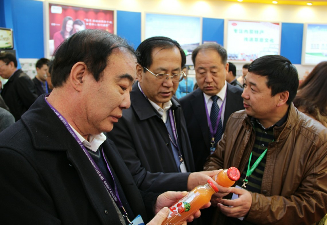 蒙元牧業(yè)董事長哈斯寶魯為王玉明副主席和郭健廳長介紹參展產(chǎn)品