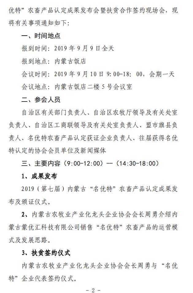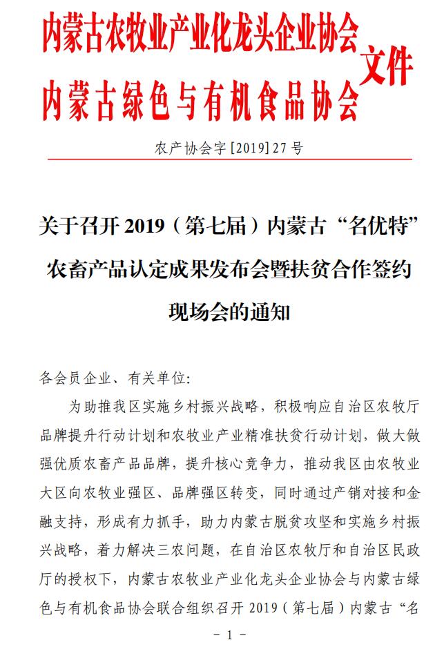 關(guān)于召開2019(第七屆)內(nèi)蒙古“名優(yōu)特”農(nóng)畜產(chǎn)品認(rèn)定成果發(fā)布會(huì)暨扶貧合作簽約現(xiàn)場(chǎng)會(huì)的通知