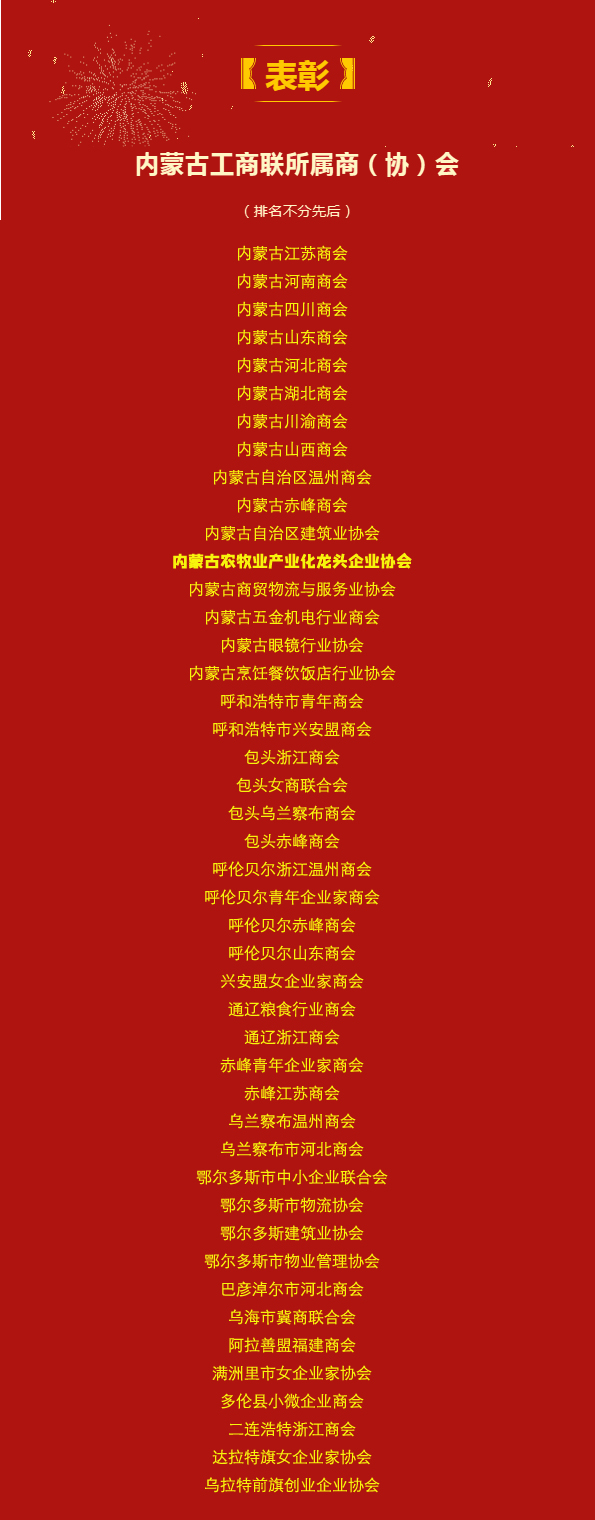 標(biāo)題:喜報!內(nèi)蒙古農(nóng)牧業(yè)產(chǎn)業(yè)化龍頭企業(yè)協(xié)會再次榮獲全國“四好”商會榮譽(yù)稱號