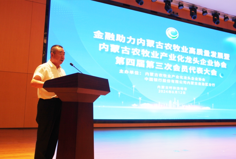2024612日,自治區(qū)工商聯(lián)、農(nóng)牧廳、財政廳、黨委金融辦、工信廳、市場監(jiān)督管理局、能源局、國家金融監(jiān)督管理總局內(nèi)蒙古監(jiān)管局、中國人民銀行內(nèi)蒙古自治區(qū)分行、人民網(wǎng)主辦,內(nèi)蒙古農(nóng)牧業(yè)產(chǎn)業(yè)化龍頭企業(yè)協(xié)會承辦的政策落地進商會直達快享惠民企及金融助力內(nèi)蒙古農(nóng)牧業(yè)高質(zhì)量發(fā)展暨內(nèi)蒙古農(nóng)牧業(yè)產(chǎn)業(yè)化龍頭企業(yè)協(xié)會第四屆三次會員代表大會在呼和浩特市成功舉辦。內(nèi)蒙古自治區(qū)政協(xié)副主席、工商聯(lián)主席安潤生,內(nèi)蒙古自治區(qū)農(nóng)牧廳二級巡視員吳忠?guī)r,中國銀行內(nèi)蒙古自治區(qū)分行黨委書記、行長胡昆,自治區(qū)工商聯(lián)黨組成員、副主席白春艷、自治區(qū)農(nóng)牧廳鄉(xiāng)村產(chǎn)業(yè)發(fā)展和農(nóng)墾處處長黃偉,自治區(qū)農(nóng)牧廳市場與對外合作處處長侯雁冰,自治區(qū)農(nóng)牧廳農(nóng)畜產(chǎn)品加工指導處處長徐大偉,內(nèi)蒙古自治區(qū)農(nóng)牧廳農(nóng)畜產(chǎn)品產(chǎn)銷服務(wù)中心主任鄔冰泉,內(nèi)蒙古自治區(qū)農(nóng)牧廳種植業(yè)管理處三級調(diào)研員文占平,自治區(qū)農(nóng)牧業(yè)技術(shù)推廣中心鄉(xiāng)村產(chǎn)業(yè)處處長趙于東、產(chǎn)業(yè)化分析師董文琪,內(nèi)蒙古自治區(qū)農(nóng)畜產(chǎn)品質(zhì)量安全監(jiān)督管理中心科長郝貴賓,自治區(qū)工商聯(lián)副主席、協(xié)會會長周勇等各主辦廳局領(lǐng)導出席會議。