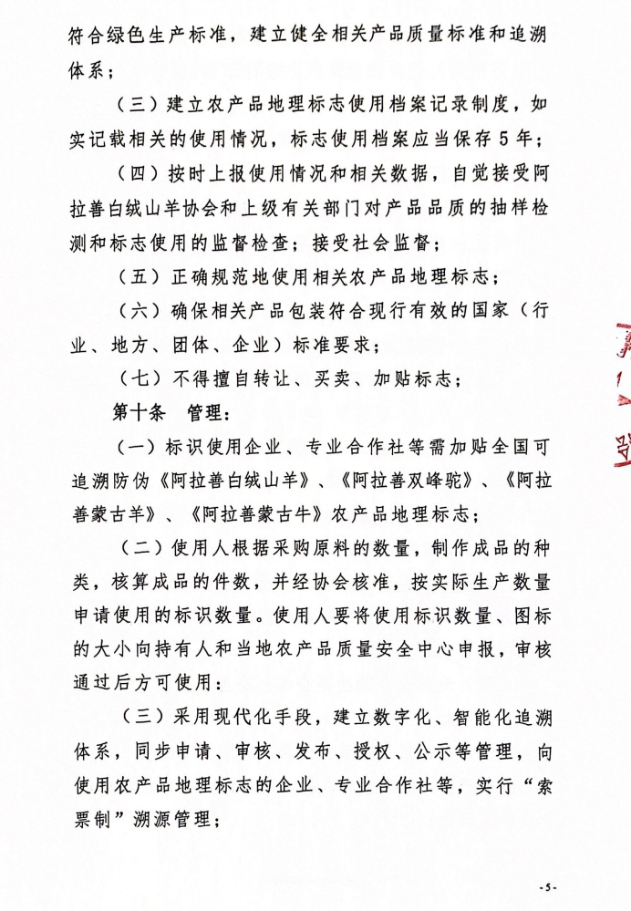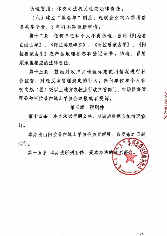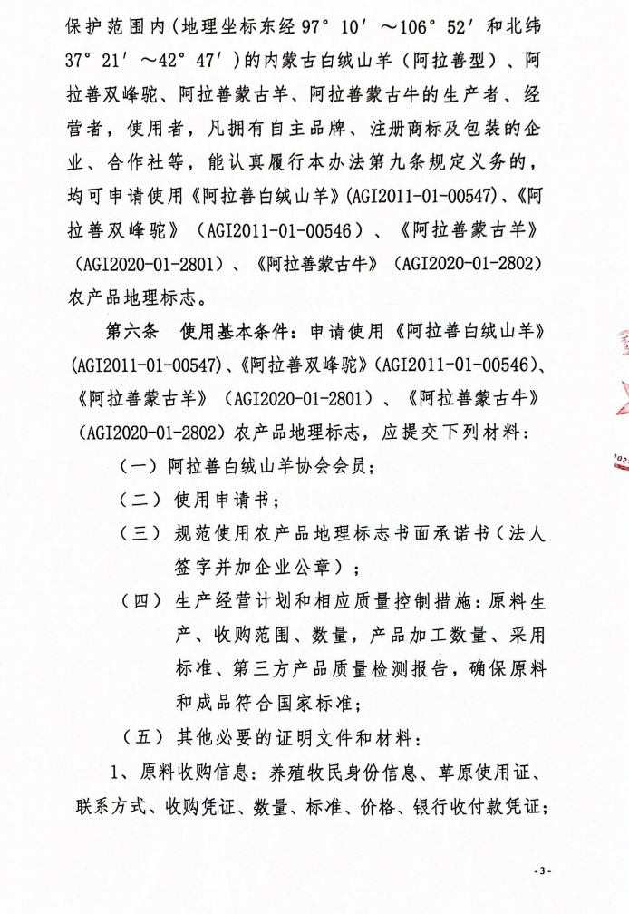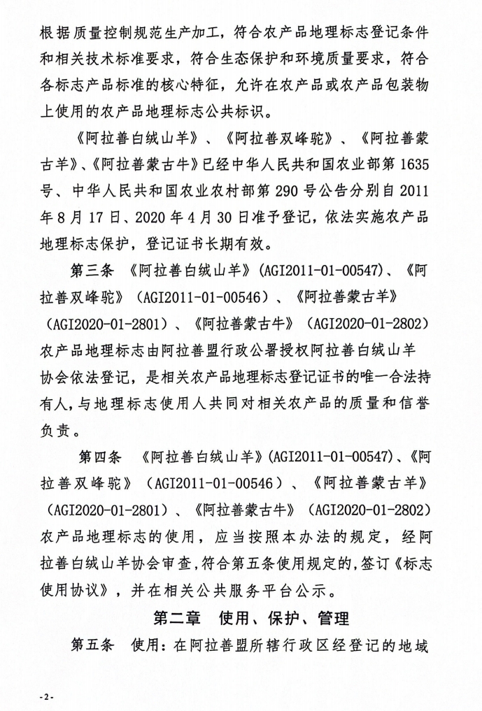 阿拉善白絨山羊協(xié)會(huì)所持有農(nóng)產(chǎn)品地理標(biāo)志管理辦法(試行)
