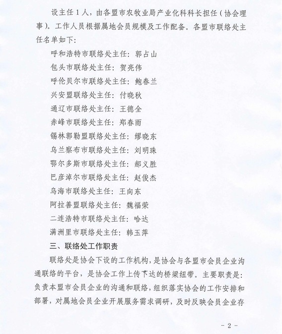 關(guān)于設(shè)立農(nóng)牧業(yè)產(chǎn)業(yè)化龍頭企業(yè)協(xié)會(huì)盟市聯(lián)絡(luò)處的通知