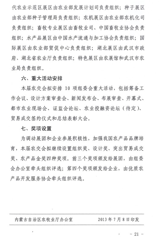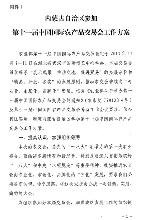 關(guān)于印發(fā)內(nèi)蒙古自治區(qū)參加第十一屆中國(guó)國(guó)際農(nóng)產(chǎn)品交易會(huì)工作方案的通知