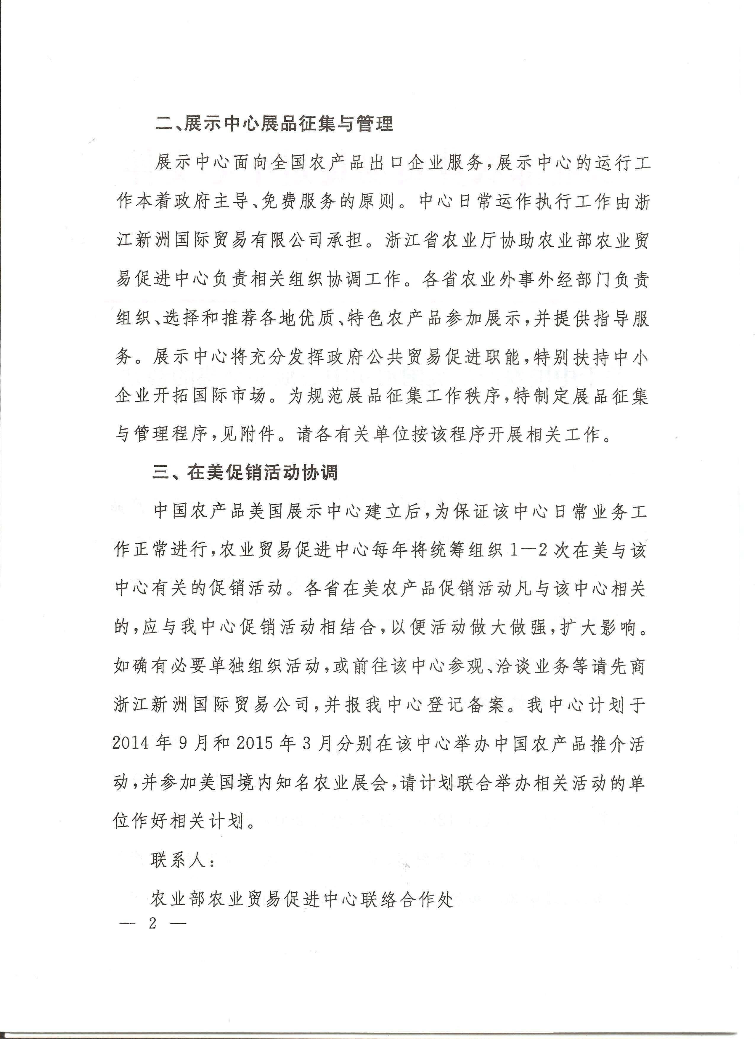 關(guān)于中國農(nóng)產(chǎn)品美國展示中心展品征集的通知