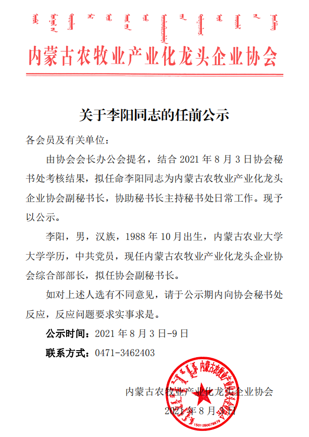 關(guān)于李陽(yáng)同志的任前公示