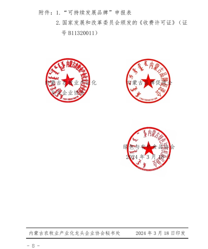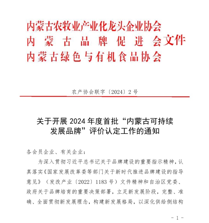 關(guān)于開(kāi)展2024年度首批“內(nèi)蒙古可持續(xù) 發(fā)展品牌”評(píng)價(jià)認(rèn)定工作的通知