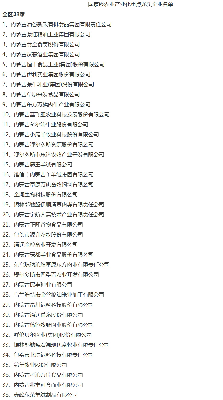 企業(yè)名稱:截止2017年末國家級農業(yè)產業(yè)化重點龍頭企業(yè)名單