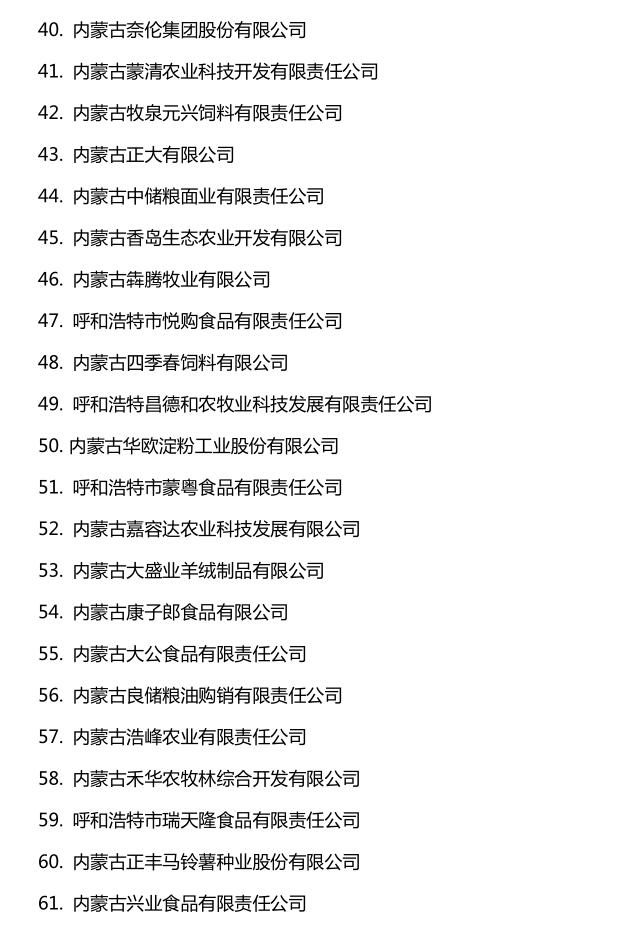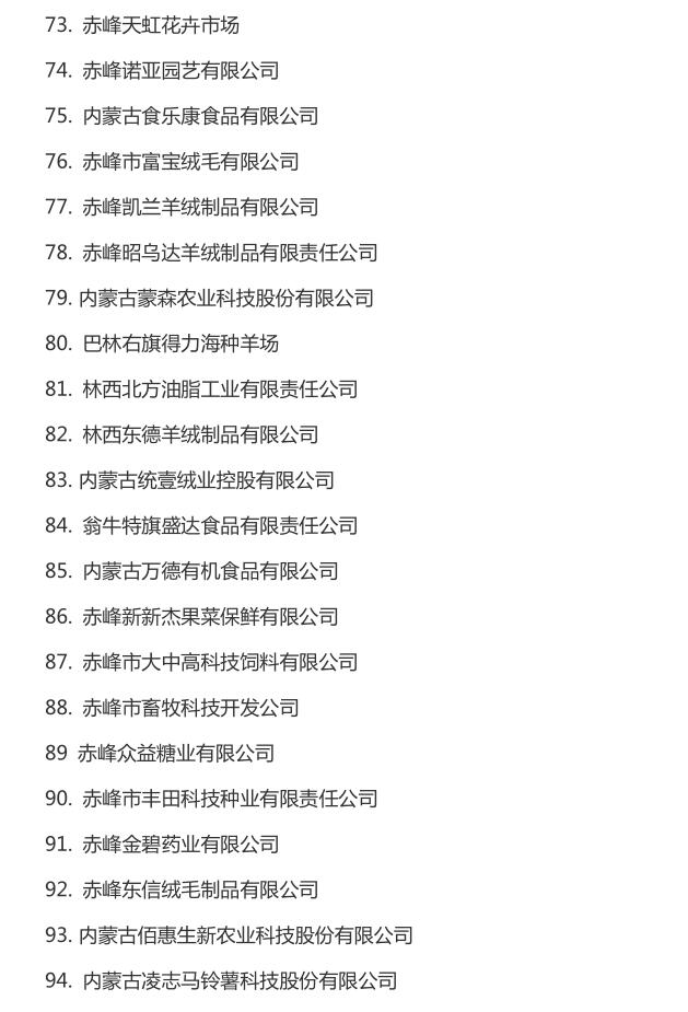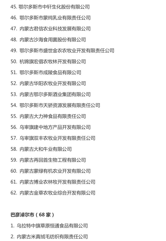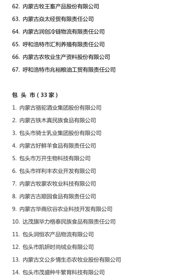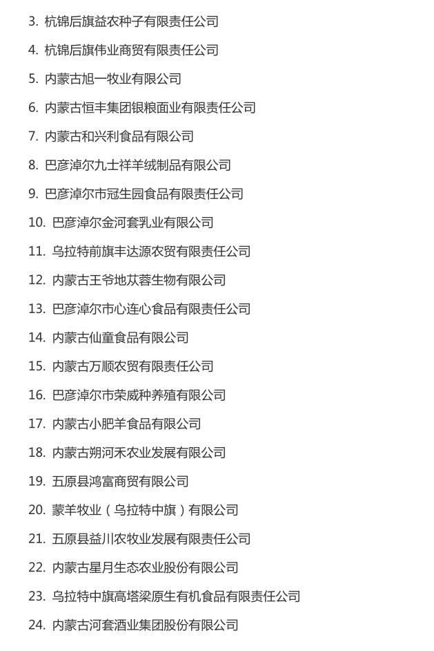 企業(yè)名稱:截止2016年末自治區(qū)級(jí)農(nóng)牧業(yè)產(chǎn)業(yè)化 重點(diǎn)龍頭企業(yè)名單​